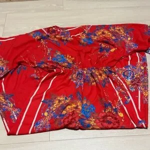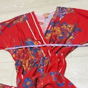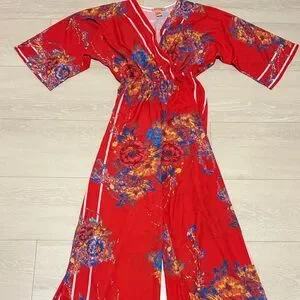 This Flying Tomato jumpsuit features a vibrant combination of red and blue floral patterns in excellent used condition. Ideal for a bold statement, this piece combines comfort and style.