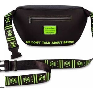 Introducing the Fun Bruno Disney hard tag Loungefly! This vibrant green fanny pack or belt bag is perfect for fans, offering ample space and a stylish design that's sure to make a statement.