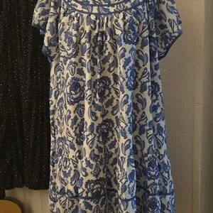 Umgee Blue and White Floral Mini Dress