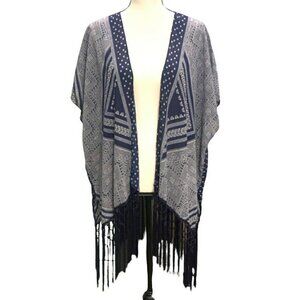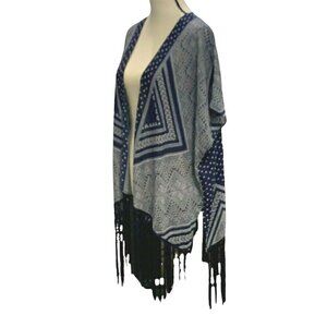 Maurices Women's Open Front Fringe Bottom Coverup Cardigan Size S/M Sleeve Blue White