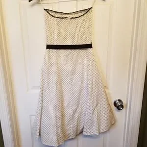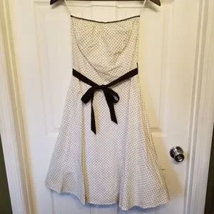 Ruby Rox Ivory Polka Dot Dress with Black Sash