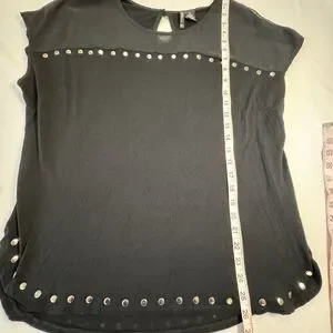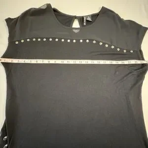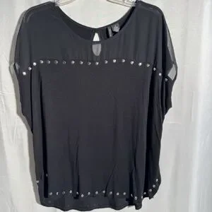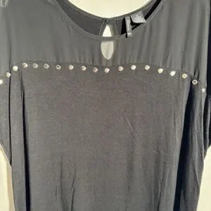 New Directions Black Studded Top Women 1X Short Sleeve Blouse Casual Chic