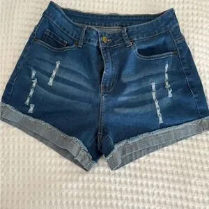 No Brand Mid rise dark wash cuffed jean shorts size Medium