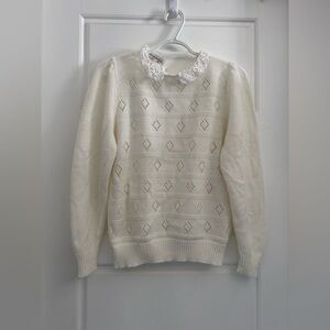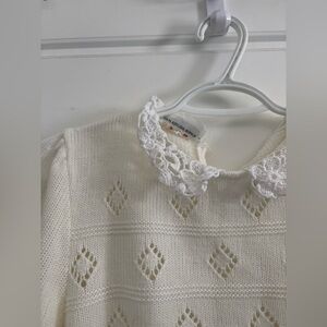 Vintage 19th Avenue Cream Knit Sweater Lace Collar Cottagecore Romantic S/M