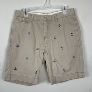 Polo Ralph Lauren Bedford Chino Shorts Mens 32 Khaki Anchor Embroidered 8.5" In