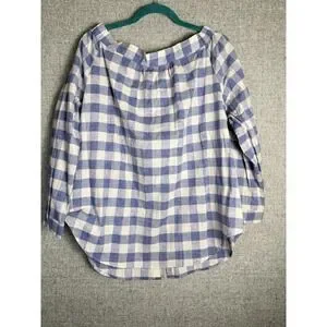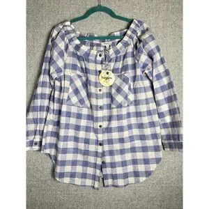 NWT Hayden LA Blue White Plaid Gingham Off Cold Shoulder Button Down Shirt LARGE