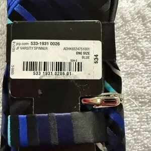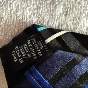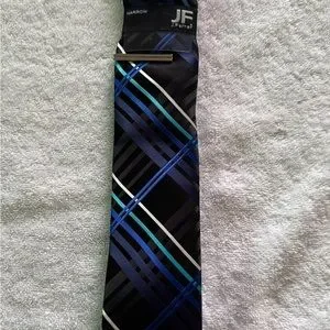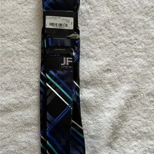 Stylish tie with black and blue stripes. Ideal for formal events.Thos tie is 58 inches and 3 inches at the bottom.New with tags
