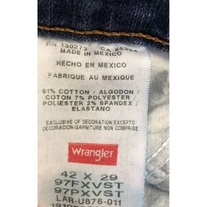 Wrangler Mens Jeans Dark Wash Straight Leg Size 42x29 Cotton Blend Workwear