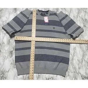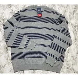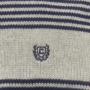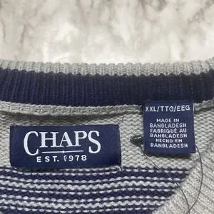 CHAPS Sweater Mens Size 2XL Gray Navy Striped Embroidered Logo NWT