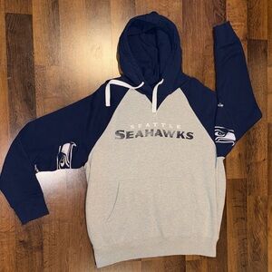 Seattle Seahawks football pullover hoodie in navy and gray from Hands High. Team logo and name featured on chest and uniquely on sleeves. Great for game days and casual wear. No rips holes tears or stains. Men’s size XL. I bundle! See my many other listings to bundle and save on shipping.