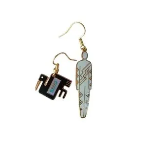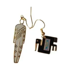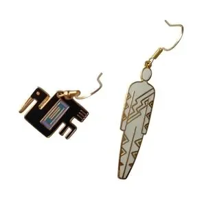 Vintage Laurel Burch Cloisonné Earrings 'Man & Pelican' Dangle French Ear Wires