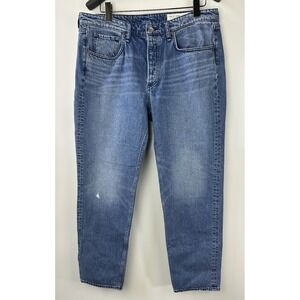 Rag & Bone Rosa Mid-Rise Boyfriend Jeans in Malibu Blue Denim Button Fly Size 34