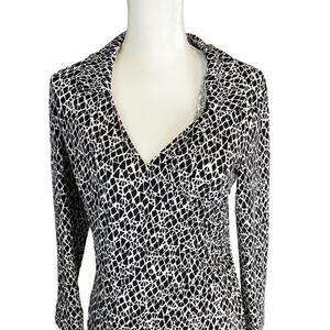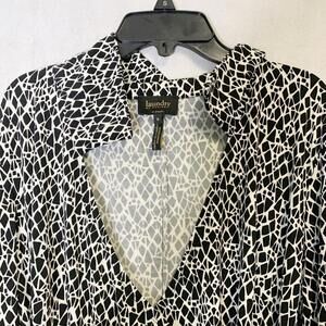 Laundry by Design Women's 8 Black White Geometric Print Wrap Midi Dress Cocktail