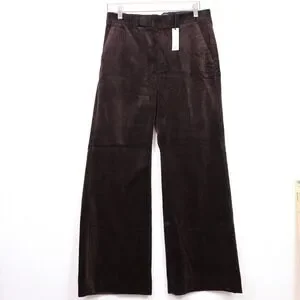 These high-rise corduroy pants feature a wide-leg silhouette and a rich chocolate brown hue.