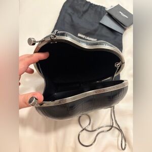 Authentic Saint Laurent Love Box Heart Clutch - Black Crocodile Embossed Leather