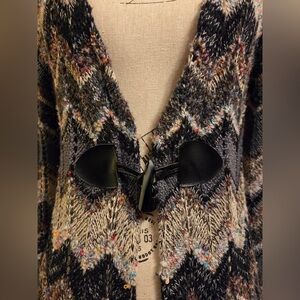 Monroe & Main Black, Gray & Cream Zigzag Knit Cardigan
