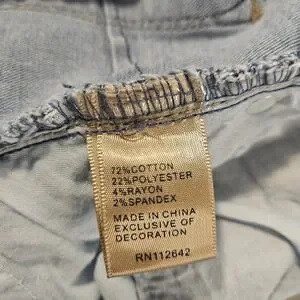 Nice preowned condition. Light wash stretch denim with floral embroidery on legs. Petite fit with comfortable stretch fabric and classic 5-pocket styling.