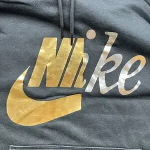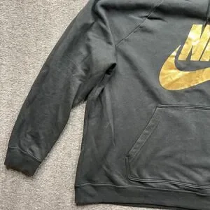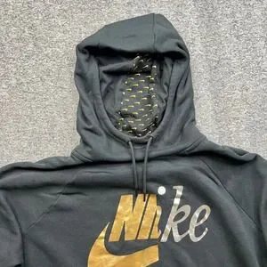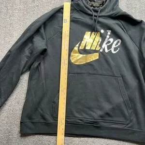 Nike Hoodie Womens 2X Black Gold Silver Graphic Logo Pullover CI1775-010