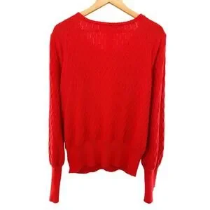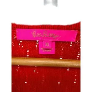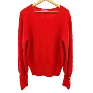 Lilly Pulitzer Jacquetta Sweater Ruby Red XL Puff Sleeve Gold Button Cuff