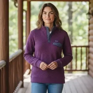 Keywords: Patagonia, pullover, quilted, snap neck, organic cotton, sweatshirt, casual, athleisure, outdoor, layering, fall fashion, winter wear, cozy, comfortable
