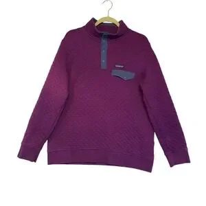 Patagonia Quilted Organic Cotton Purple Pullover Sweatshirt Women Size L