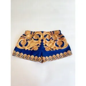 Authentic Versace Gold Baroque Heritage Print Swim Trunks Royal Blue Men's Sz M