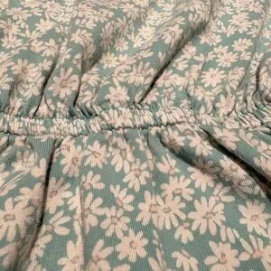 Lands End Fit and Flare tunic with floral daisy pattern against blue background. Capped sleeves. Perfect for warmer weather!