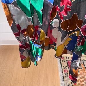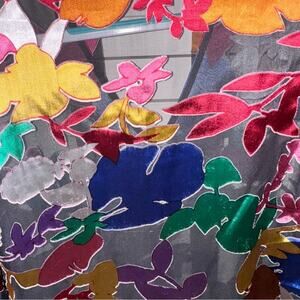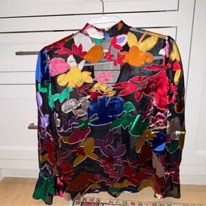 This beautiful blouse features a vibrant floral pattern that is perfect for any occasion.