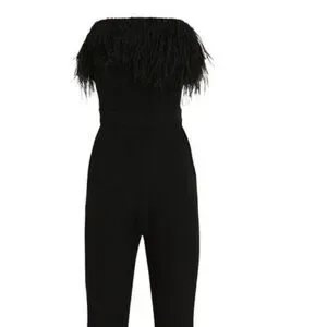 NWT SAYLOR Feathers Strapless Jumpsuit Black Sz 16