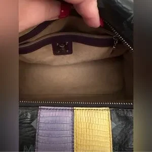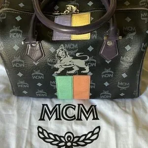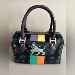 Introducing a chic MCM satchel that commands attention with its bold color blocks and iconic logo featuring the striking lion motif. This stylish statement piece is perfect for making an impression. While there is a minor ink mark on the interior, the luxurious suede lining adds to its elegance. This satchel is larger than the Boston bags, providing ample space for all your essentials. The shiny silver hardware is free of any scratches, and although there’s minor rubbing on the handles, the bag remains in excellent condition. This authentic Italian luxury piece comes complete with a Certificate of Authenticity and a dust bag. Elevate your style with this exceptional accessory!