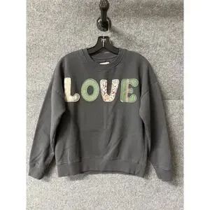 Recycled Threads Sweatshirt Women XS Love Spell Out Patchwork Hippie Boho R10