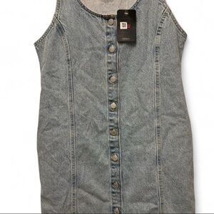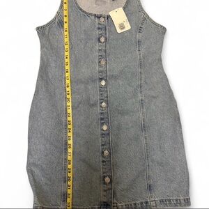 Short denim dress , great for summer and very casual. With pockets and belt on the back.