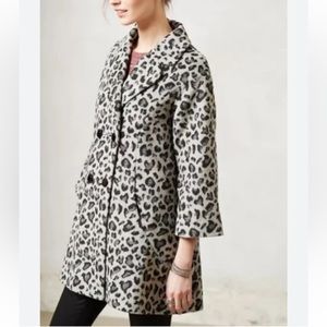 Anthropologie Elevenses gray animal print swing coat ladies size Small. Double breasted button front. Pockets. Lined. Lovely whimsical coat! Gently preowned