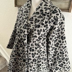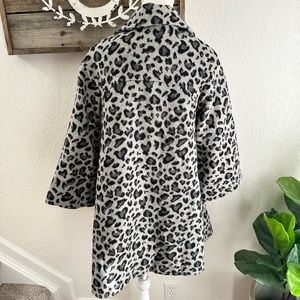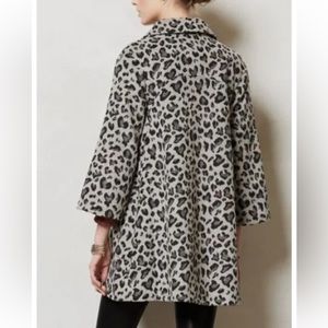 Anthropologie Elevenses gray animal print swing trapeze coat ladies size Small