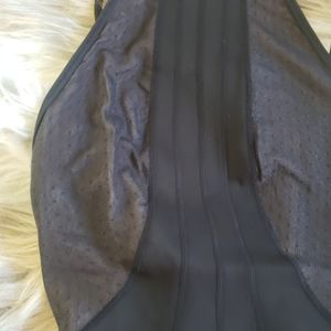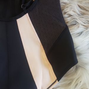 The Bodysuit by Kiki de Montparnasse is a lightweight high neck one piece with an open back and slim adjustable straps. Expertly tailored with flattering vertical panels, the front features a sheer, dotted mesh laid over opaque, nude fabric for full coverage