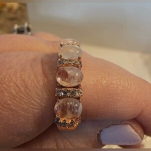 Stunning rose gold ring with pink stones. Perfect for any occasion.