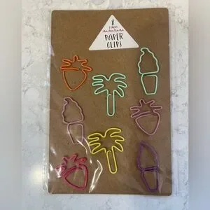 Set of 8 colorful paper clips in fun summer shapes and a matching strawberry-shaped sticky note pad (40 sheets). Perfect for organizing and adding a playful touch to your workspace.