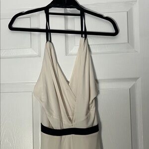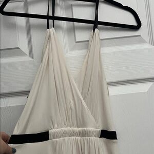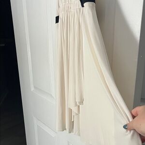 Chic white cream dress with black straps. Strapless design, double string straps. Half open back. Elastic waist. SO Soft and light weight. Nice layered flow bottom. No see through. Stylish outings, classic and perfect for a spin. Worn once.