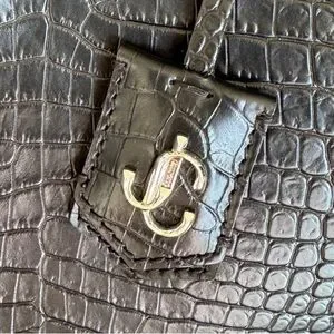 Elegant croc-embossed leather tote from Jimmy Choo. Smooth top handles for comfortable carry. Subtle logo plaque and signature charm detail. roomy interior for everyday essentials. Timeless, polished silhouette for versatile wear.