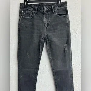 stretchy AEO next level flex, skinny jeans, men's fashion, men's jeans, distressed black jeans, denim casual everyday wear, practical elevated basics, blokecore brandname favorite menswear trendy stylish straight leg, tapered 32x32, 32x34