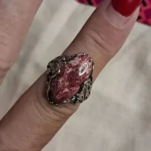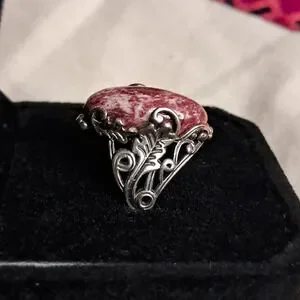 Artisan Crafted Natural Norwegian Thulite Ring in 925 Sterling Silver.