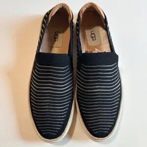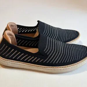 UGG Sammy Breeze Slip On Sneaker Women 8.5 Black Knit Stripe Comfort Casual Shoe