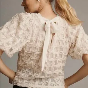Anthropologie Sarah Hann Ivory Puff-Sleeve Textured Blouse
