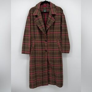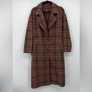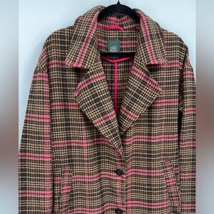 Wild Fable Plaid Long Coat Pink Brown Wool Blend Size Small