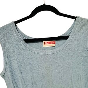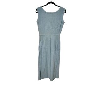 Vintage 1960s Spinnerin Light blue ribbed knit sleeveless midi dress with tie belt. This elegant dress features a flattering silhouette and a comfortable knit construction. The sleeveless design and midi length make it perfect for warmer weather, while the included tie belt allows for adjustable waist definition.