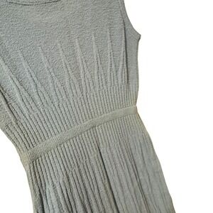 Spinnerin Light Blue Ribbed Knit Sleeveless Midi Dress w/ Belt 1960s Virgin Wool