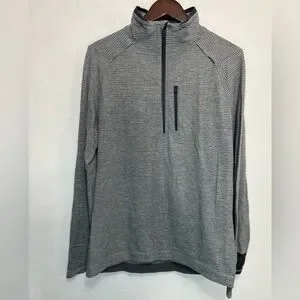 Lululemon Surge Quarter Zip Pullover Long Sleeve Shirt Gray Striped Mens Medium
