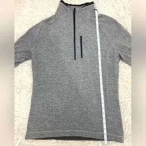 Lululemon Surge Quarter Zip Pullover Long Sleeve Shirt Gray Striped Mens Medium.