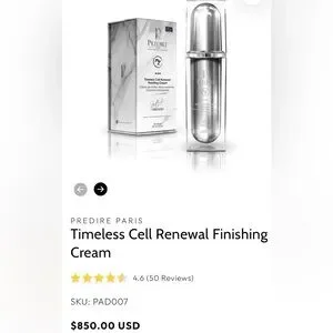 Prédiré Paris Timeless Cell Renewal Finishing Cream is the ultimate non-surgical solution for smoother, radiant skin. This lightweight moisturizer nourishes and revitalizes, unlocking your skin’s potential. Infused with Retinol, Collagen, and stem cells, it boosts collagen and elastin. Fine lines and wrinkles are minimized, while hydration, density, and elasticity improve—leaving your complexion smooth and radiant.