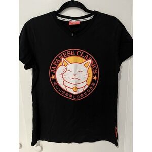 Women's Japanese Classics Brand T Shirt Cat Black Size XL NWOT